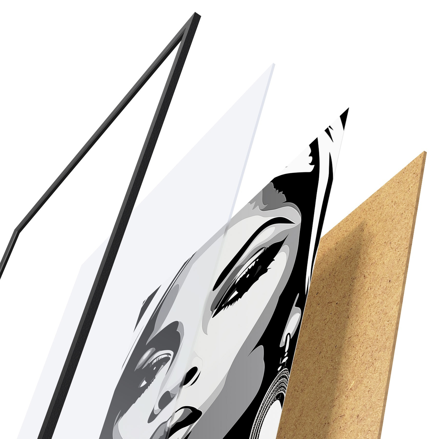 Plakat koosneb raamist, pleksiklaasist, trükitud pildist ja puitlaastplaadist alusplaadist. Tänu tagaküljel olevatele kinnitustele saab plakati kohe seinale riputada.