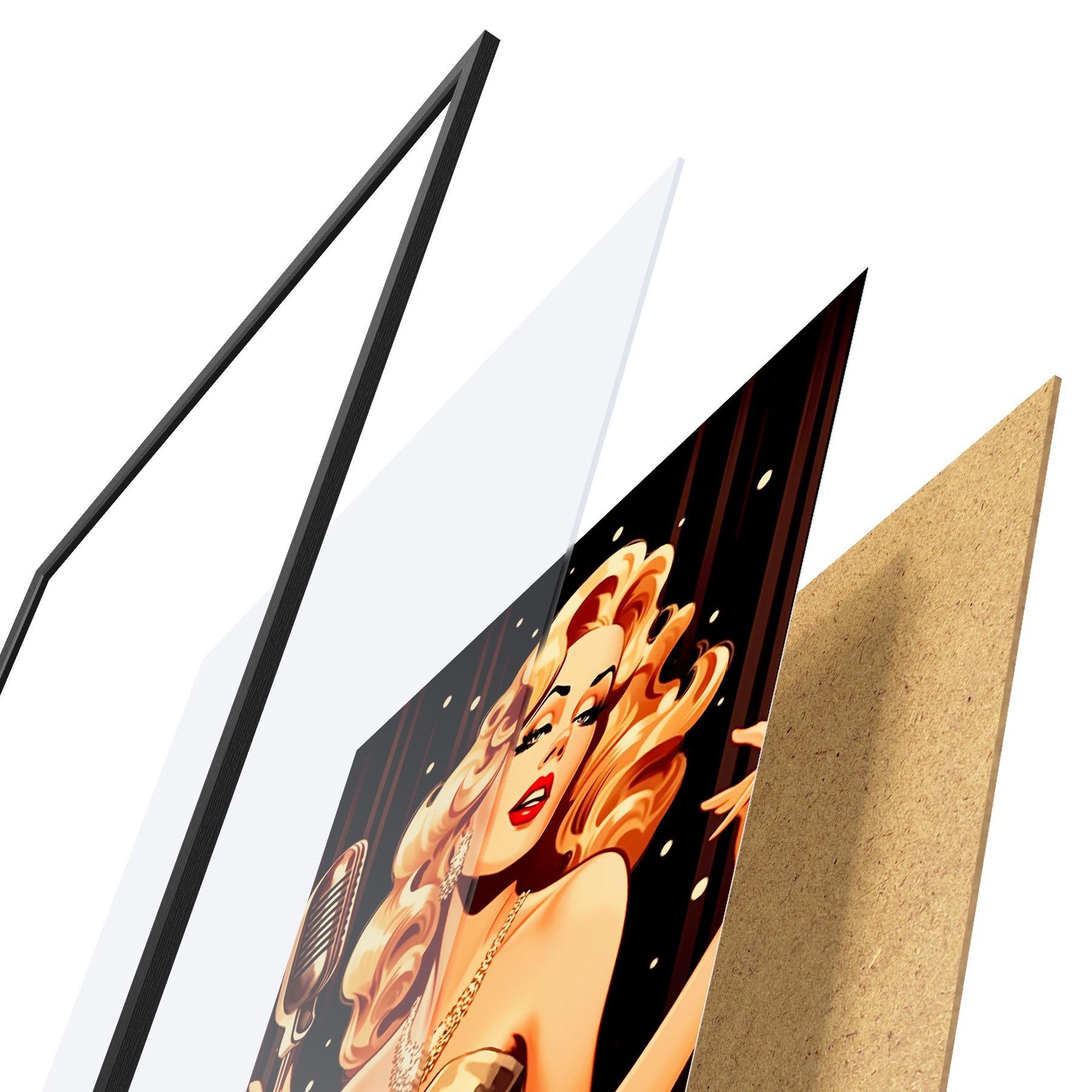 Plakat koosneb raamist, pleksiklaasist, trükitud pildist ja puitlaastplaadist alusplaadist. Tänu tagaküljel olevatele kinnitustele saab plakati kohe seinale riputada.