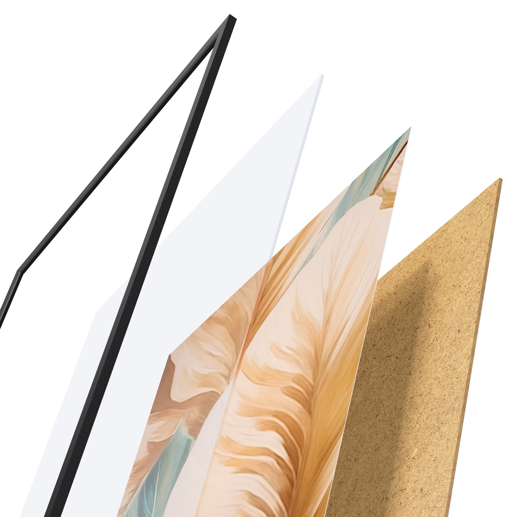 Plakat koosneb raamist, pleksiklaasist, trükitud pildist ja puitlaastplaadist alusplaadist. Tänu tagaküljel olevatele kinnitustele saab plakati kohe seinale riputada.