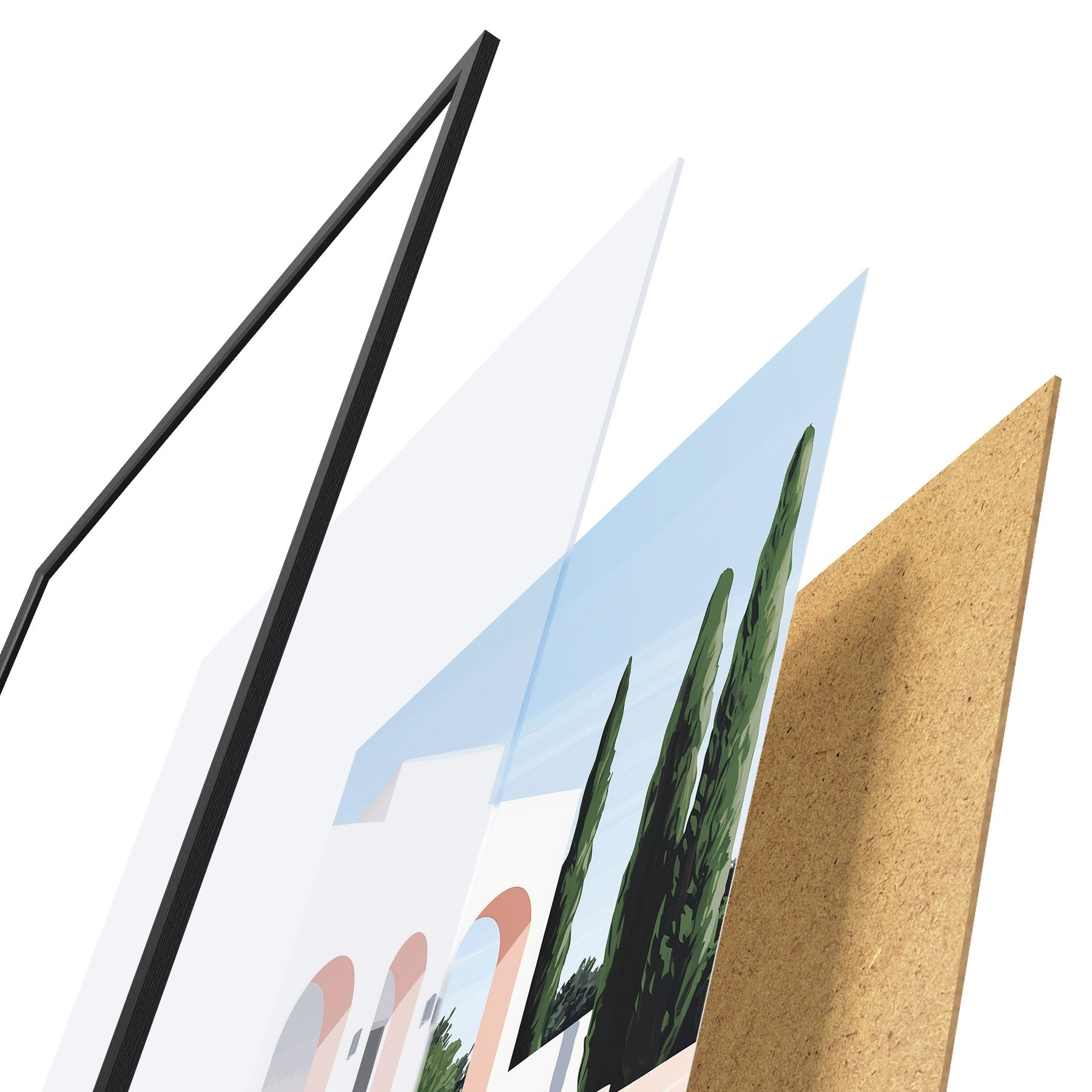 Plakat koosneb raamist, pleksiklaasist, trükitud pildist ja puitlaastplaadist alusplaadist. Tänu tagaküljel olevatele kinnitustele saab plakati kohe seinale riputada.