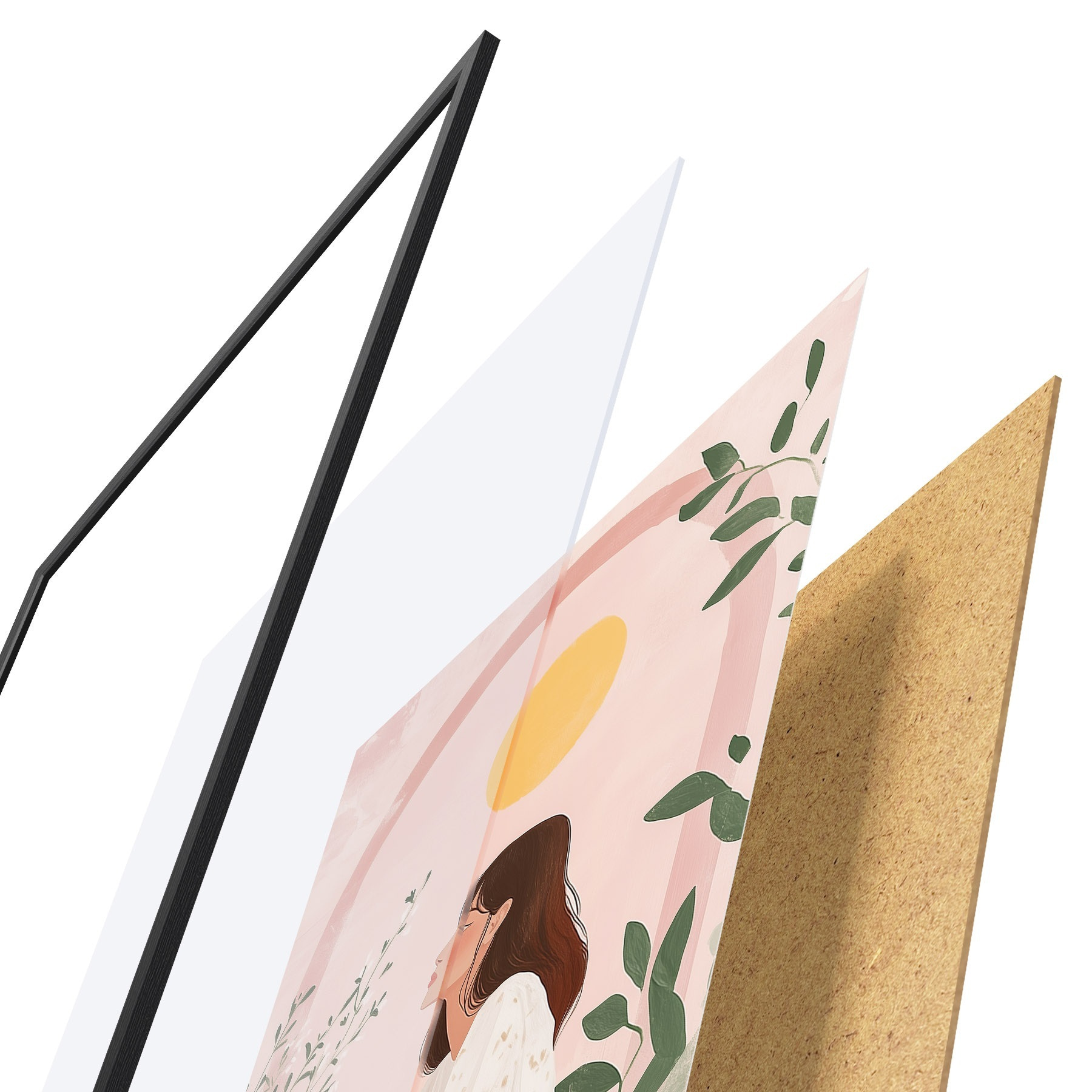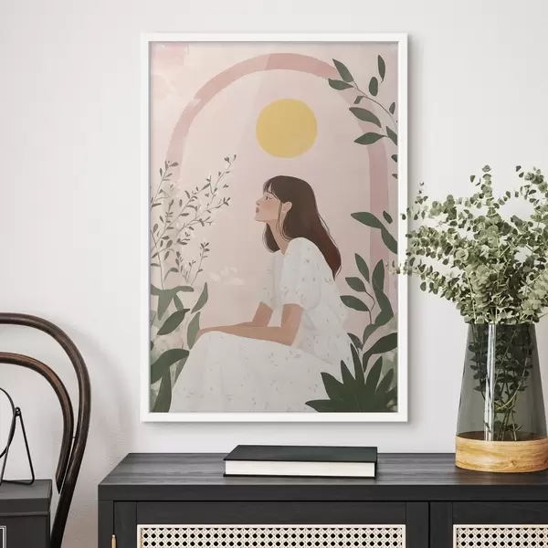 Poster Ilus naine troopilises aias, päike, pastelsed värvid Nr f44155