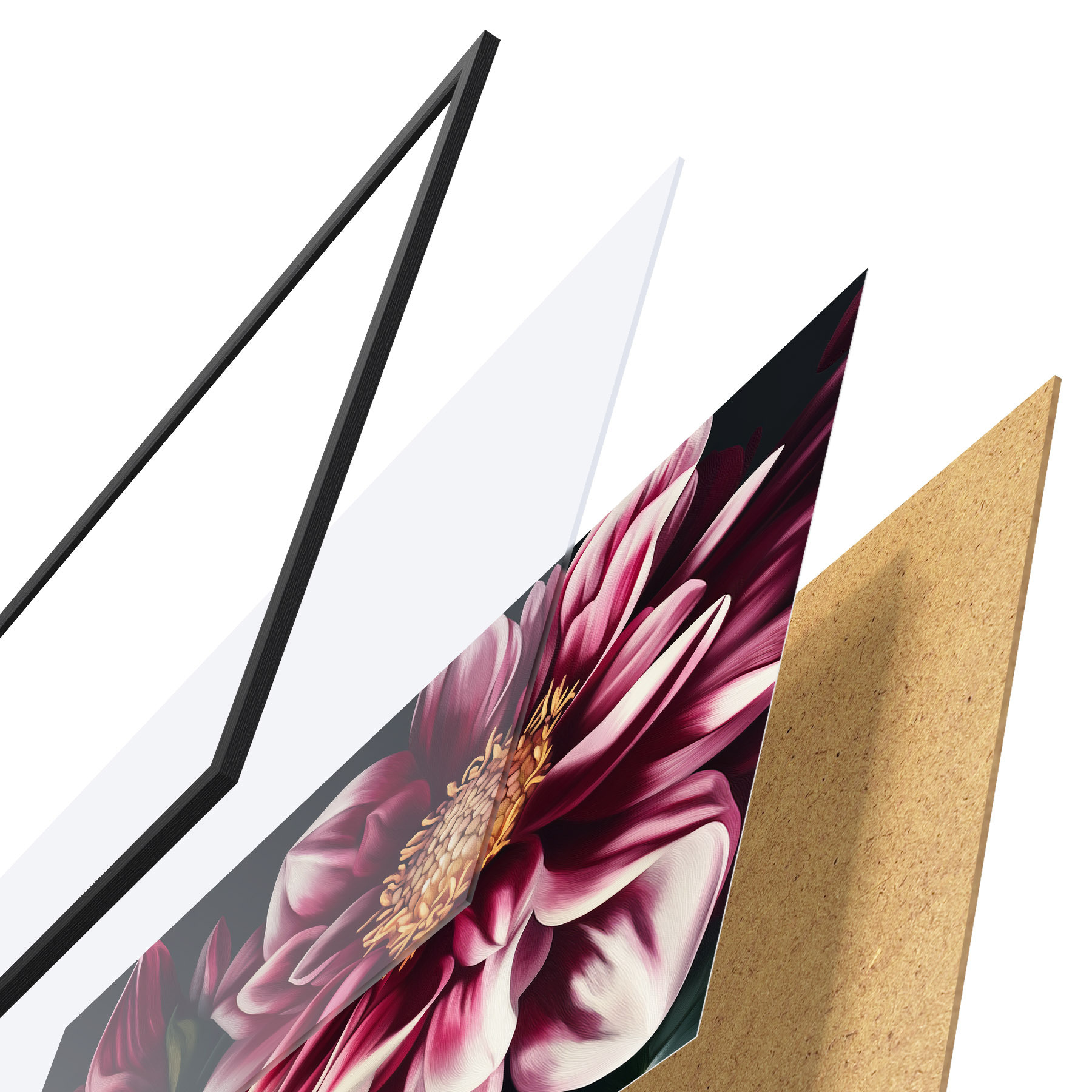 Plakat koosneb raamist, pleksiklaasist, trükitud pildist ja puitlaastplaadist alusplaadist. Tänu tagaküljel olevatele kinnitustele saab plakati kohe seinale riputada.