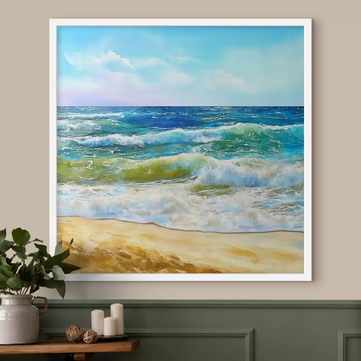 Me müüme pilte kanderaamidel - see on puidust raam, millele lõuend on pingutatud. Seda pilti ei ole vaja raamida, seda võib riputada otse seinale.