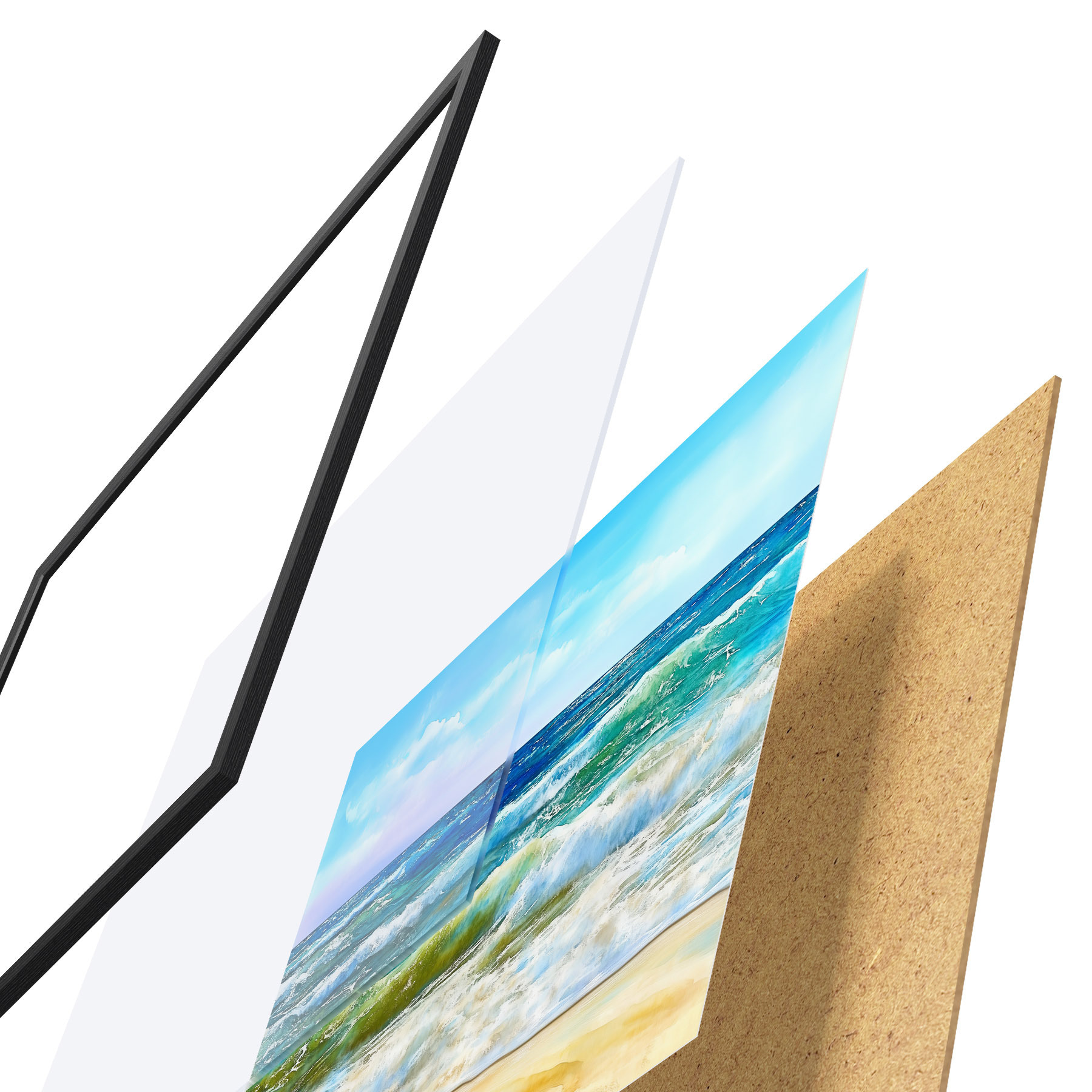 Plakat koosneb raamist, pleksiklaasist, trükitud pildist ja puitlaastplaadist alusplaadist. Tänu tagaküljel olevatele kinnitustele saab plakati kohe seinale riputada.