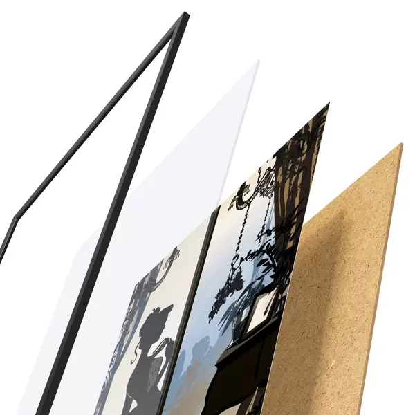 Plakat koosneb raamist, pleksiklaasist, trükitud pildist ja puitlaastplaadist alusplaadist. Tänu tagaküljel olevatele kinnitustele saab plakati kohe seinale riputada.