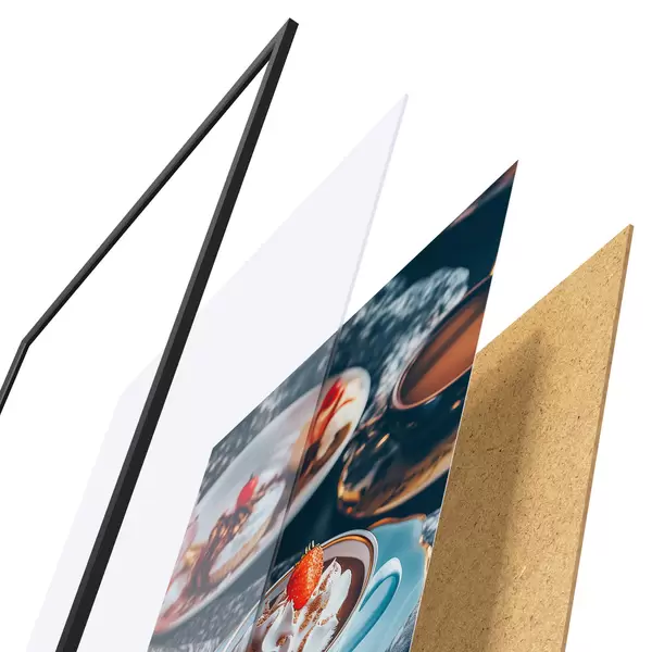 Plakat koosneb raamist, pleksiklaasist, trükitud pildist ja puitlaastplaadist alusplaadist. Tänu tagaküljel olevatele kinnitustele saab plakati kohe seinale riputada.