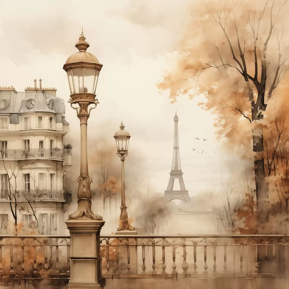 Plakat Sügis Pariisis atmosfäärilise akvarellistiili stiilis f44239