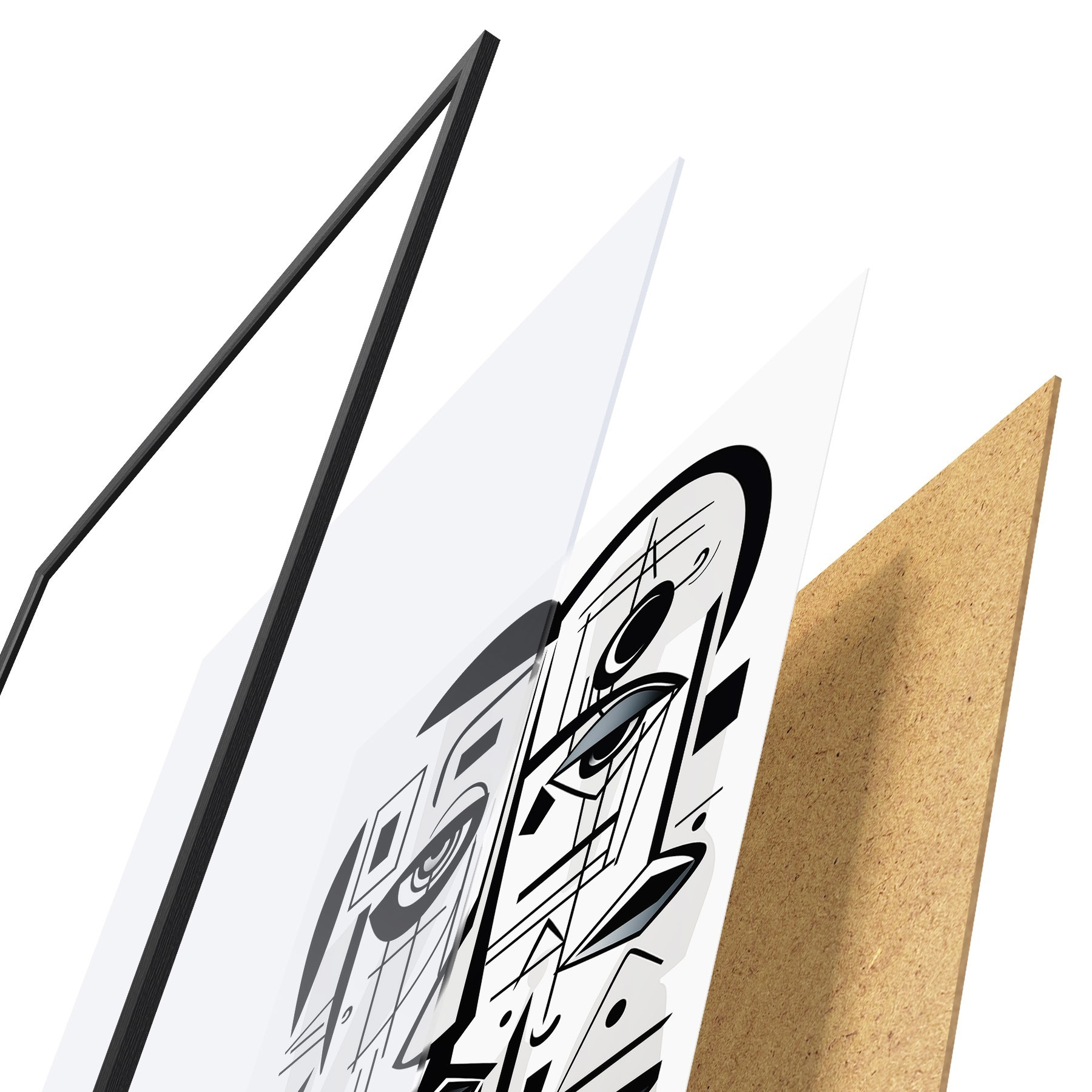 Plakat koosneb raamist, pleksiklaasist, trükitud pildist ja puitlaastplaadist alusplaadist. Tänu tagaküljel olevatele kinnitustele saab plakati kohe seinale riputada.