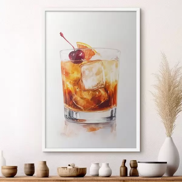 Poster Apelsinikokteil jää ja kirssiga, akvarellstiilis Nr f44303