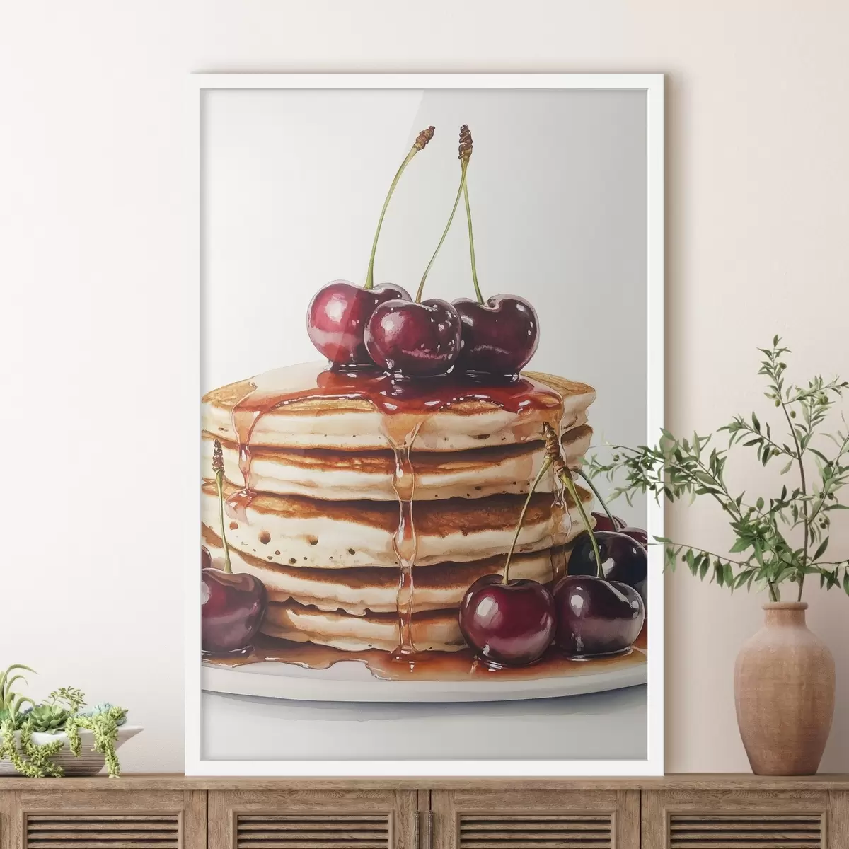 Poster Maitsvad pannkoogid kirsside ja siirupiga, akvarellistiilis Nr f44305