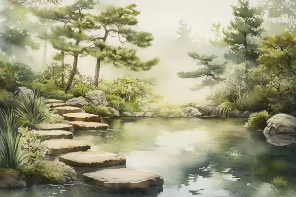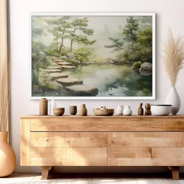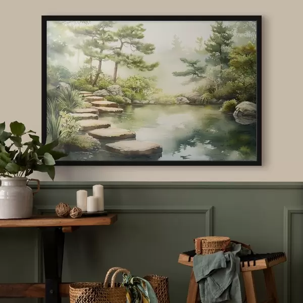 Poster Idamaine aed koos järve ja puudega, loodus, akvarellstiilis Nr f44313