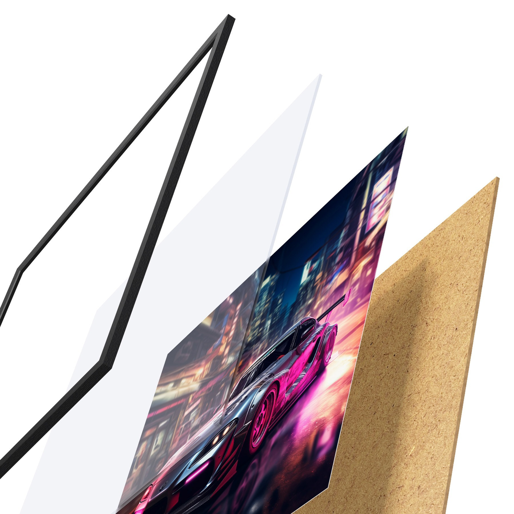 Plakat koosneb raamist, pleksiklaasist, trükitud pildist ja puitlaastplaadist alusplaadist. Tänu tagaküljel olevatele kinnitustele saab plakati kohe seinale riputada.
