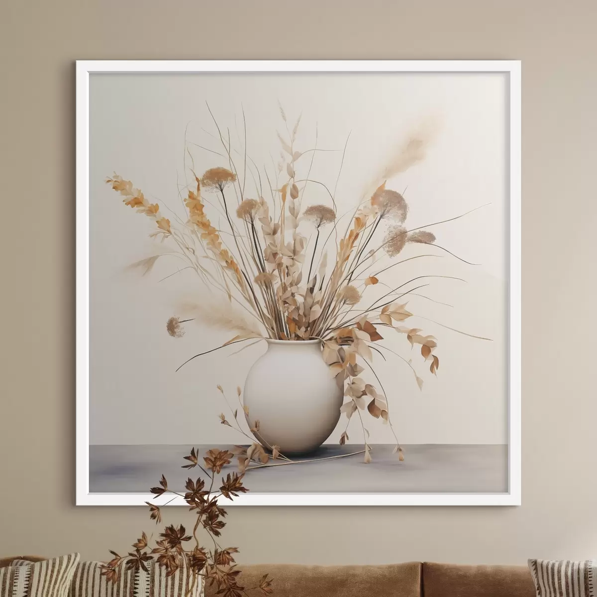 Plakat Kuivatatud rohu ja lillede komplekt valges vaasis f44348