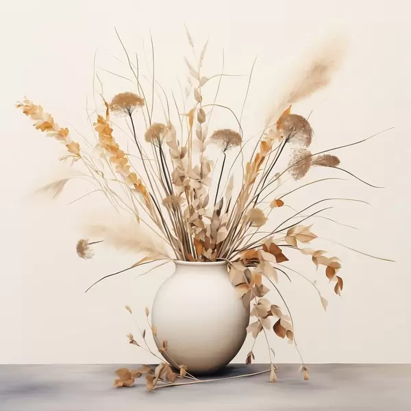 Plakat Kuivatatud rohu ja lillede komplekt valges vaasis f44348