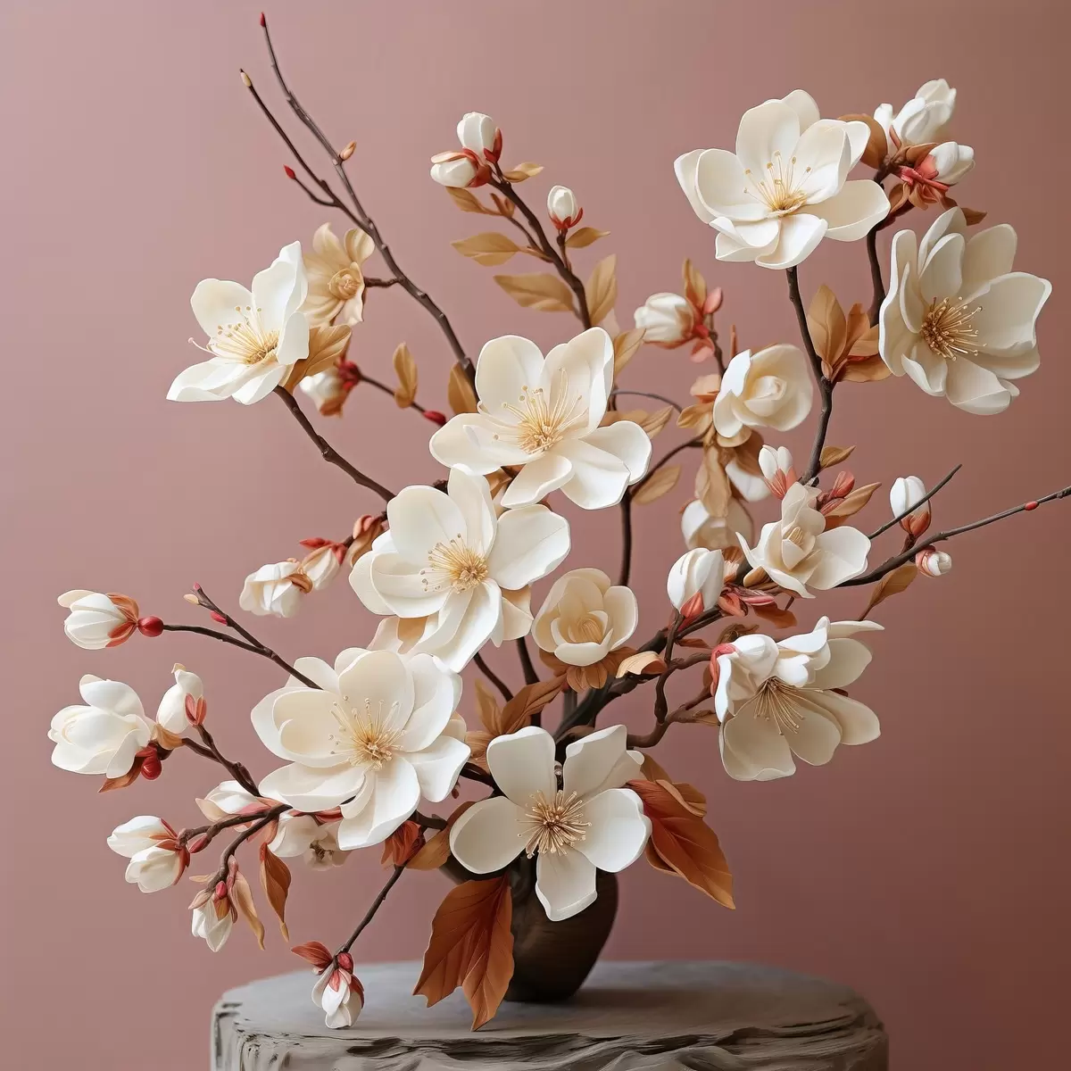 Plakat Magnoolia pastelne õrnus roosal taustal f44357