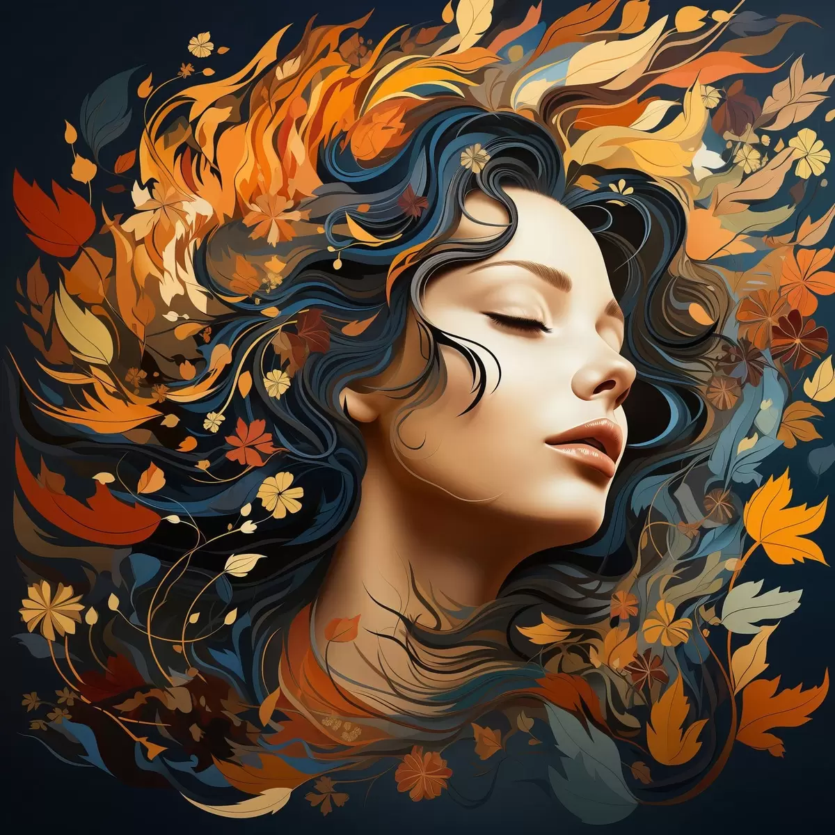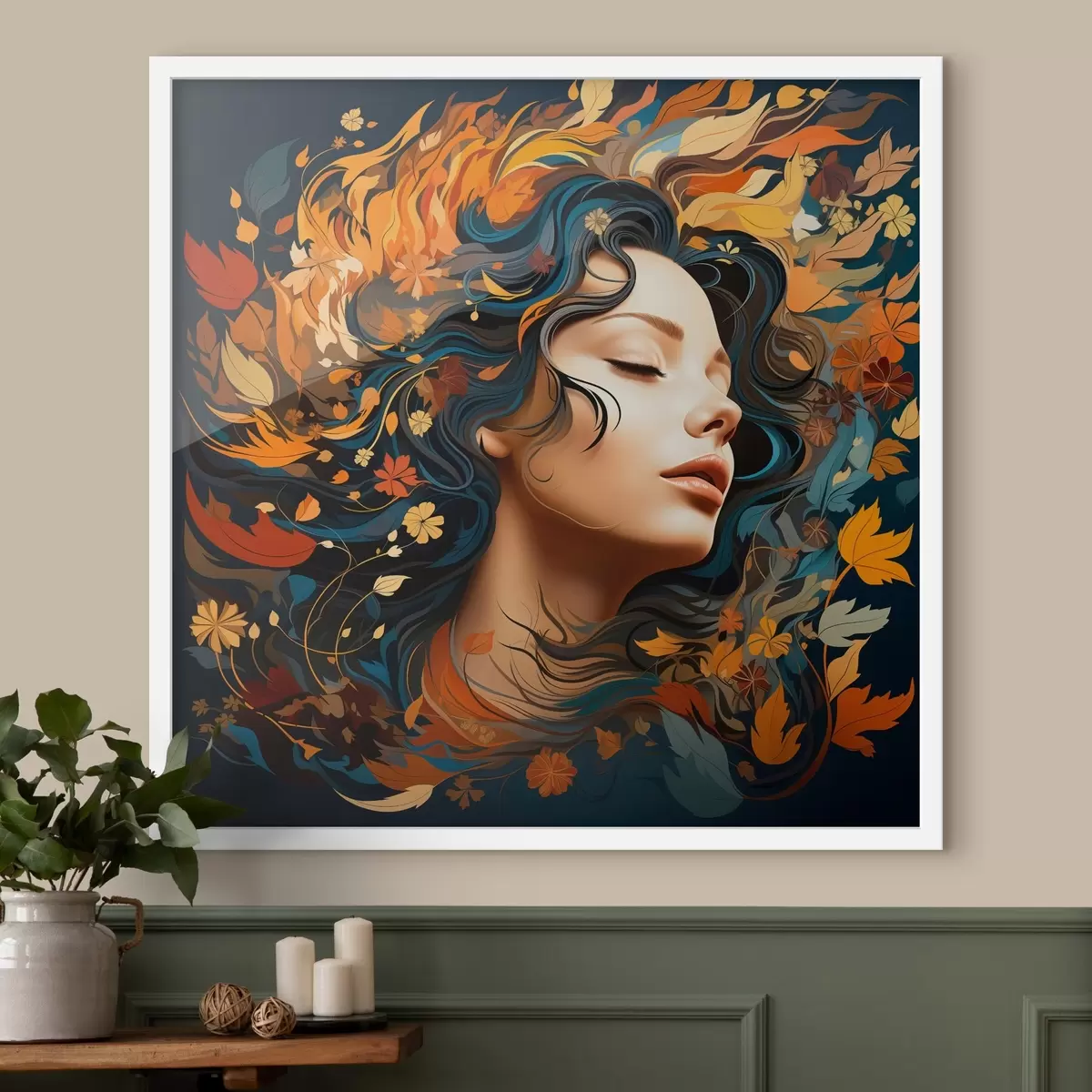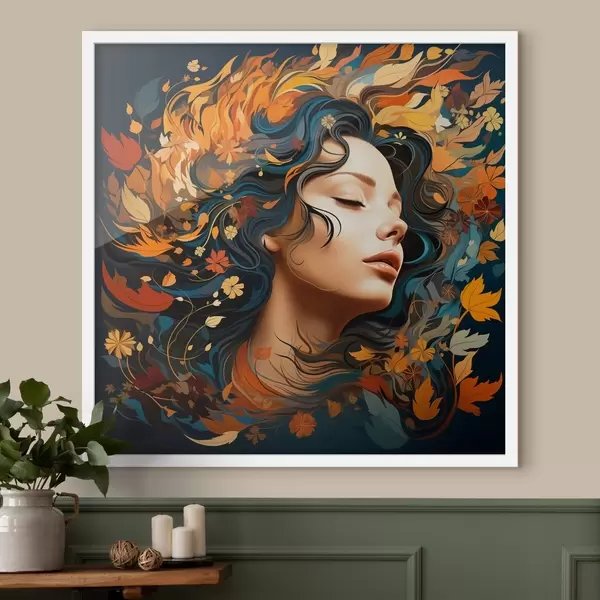 Plakat Tüdruk ja langevad lehed f44358