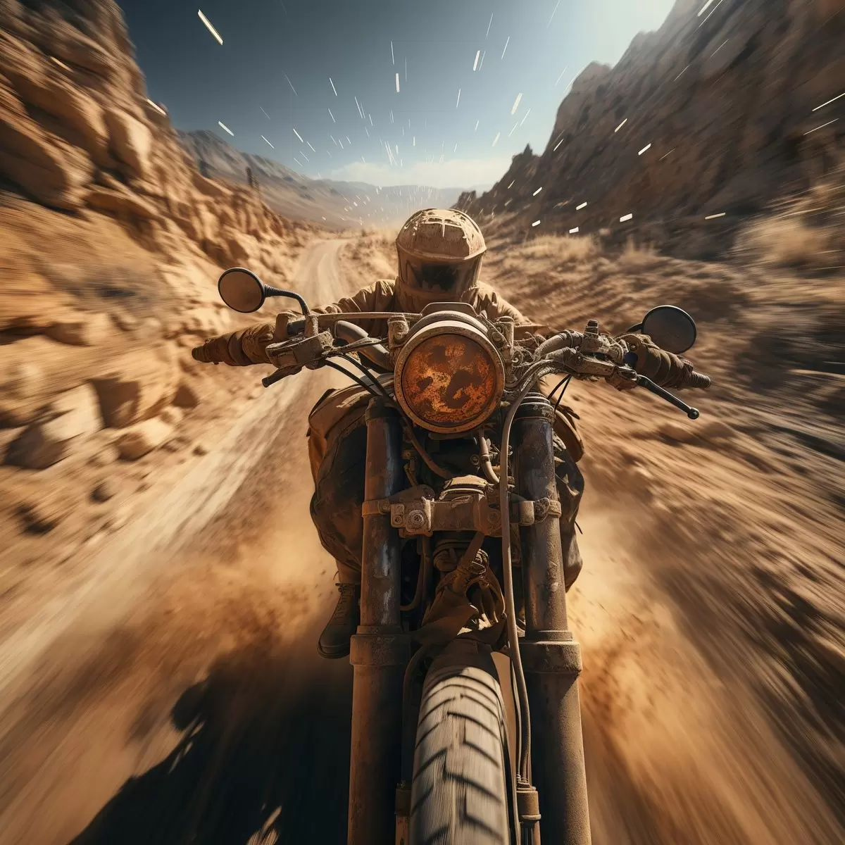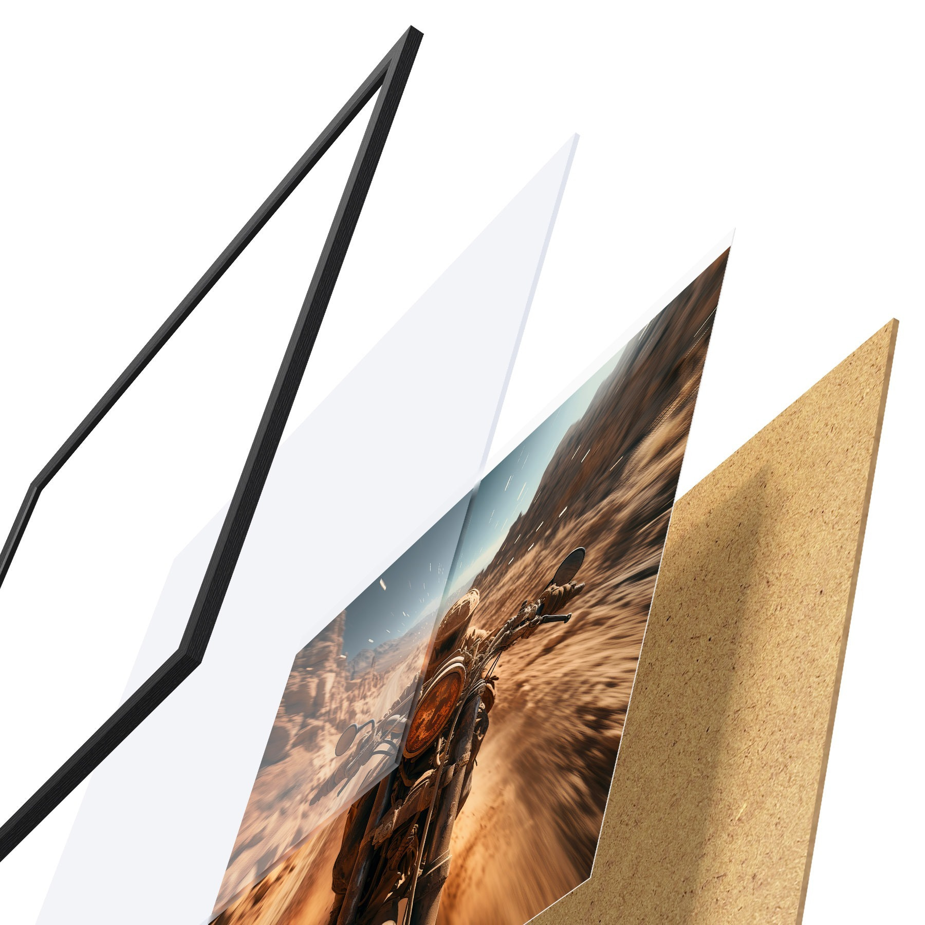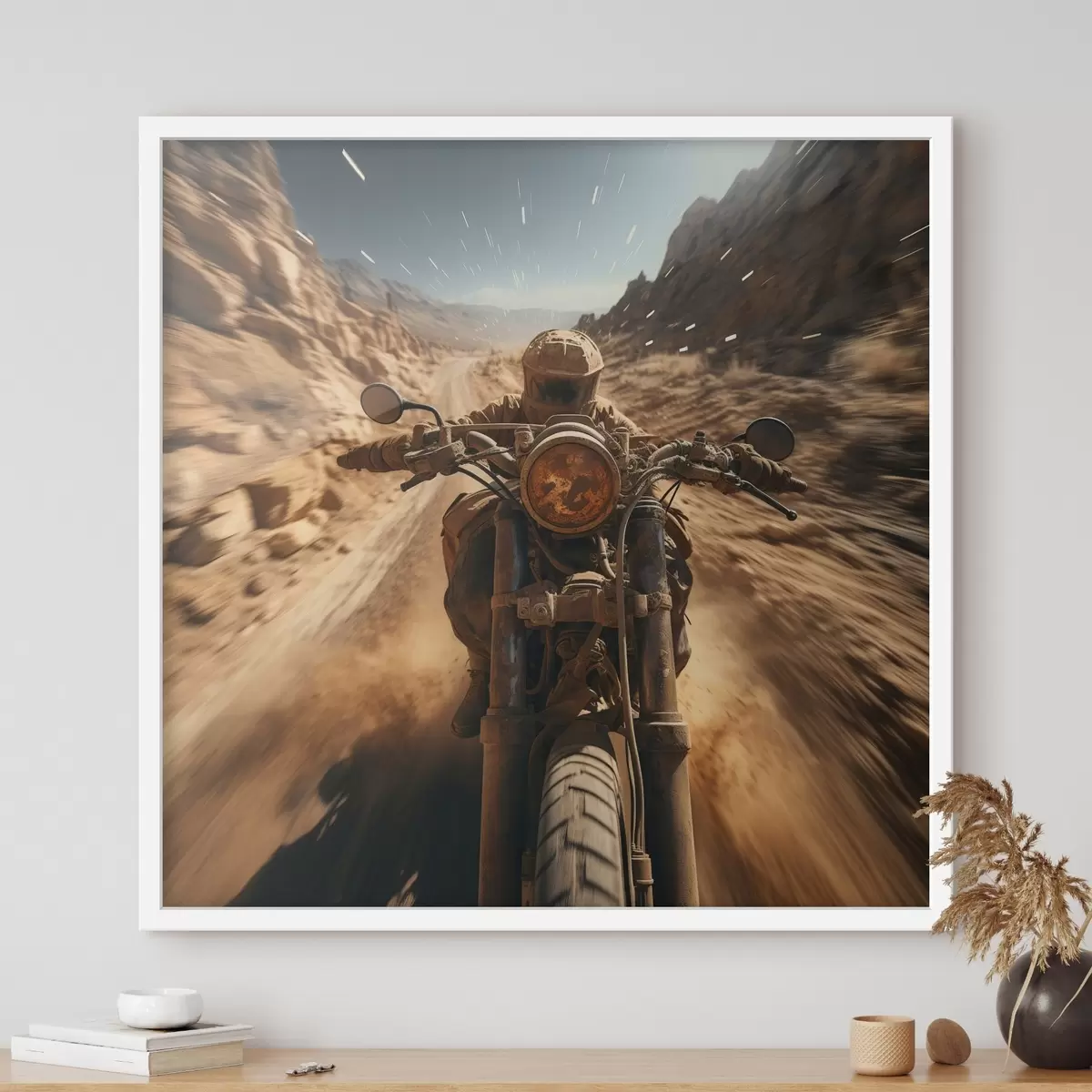 Plakat Mootorrattur kiirustab mööda kõrbeteed f44361