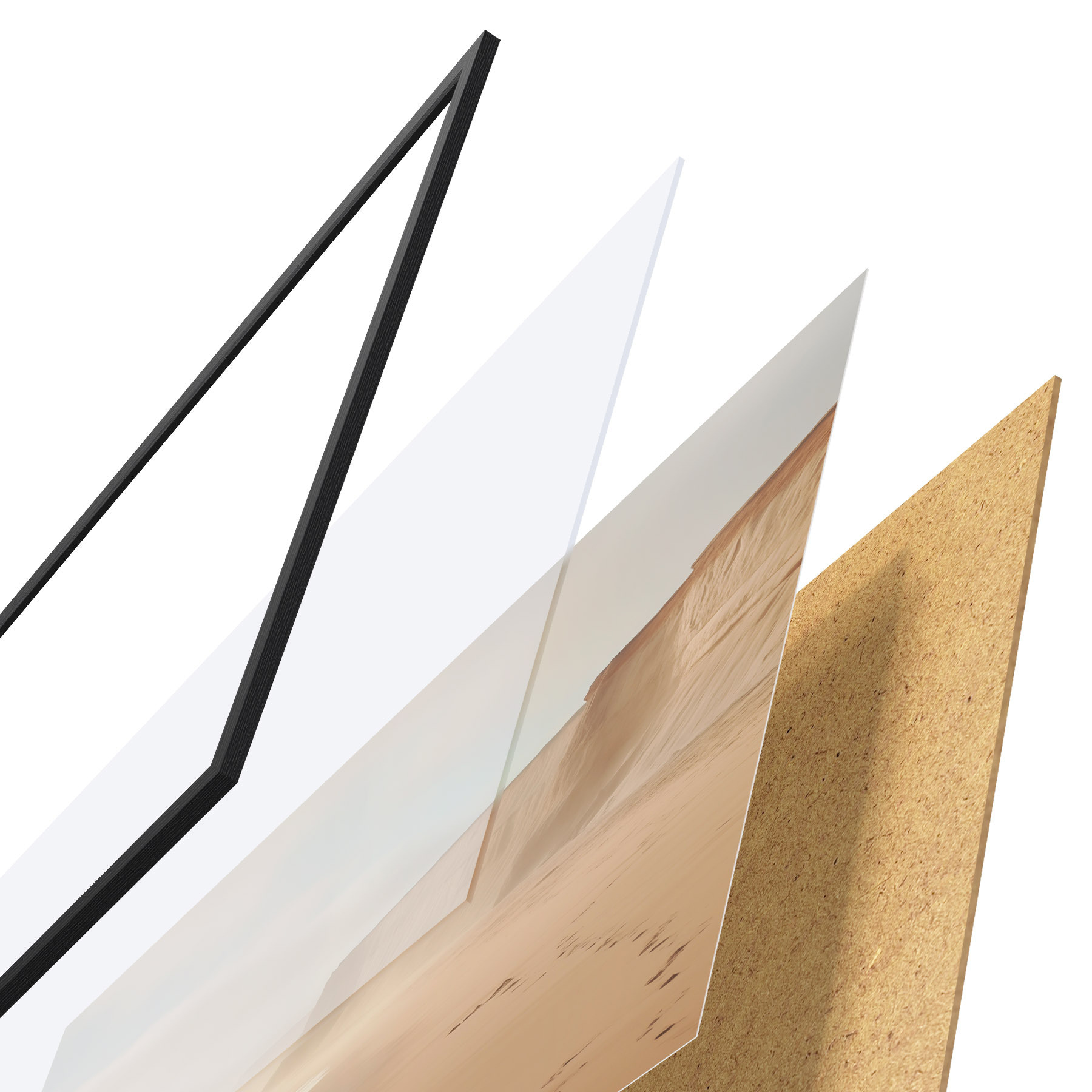 Plakat koosneb raamist, pleksiklaasist, trükitud pildist ja puitlaastplaadist alusplaadist. Tänu tagaküljel olevatele kinnitustele saab plakati kohe seinale riputada.