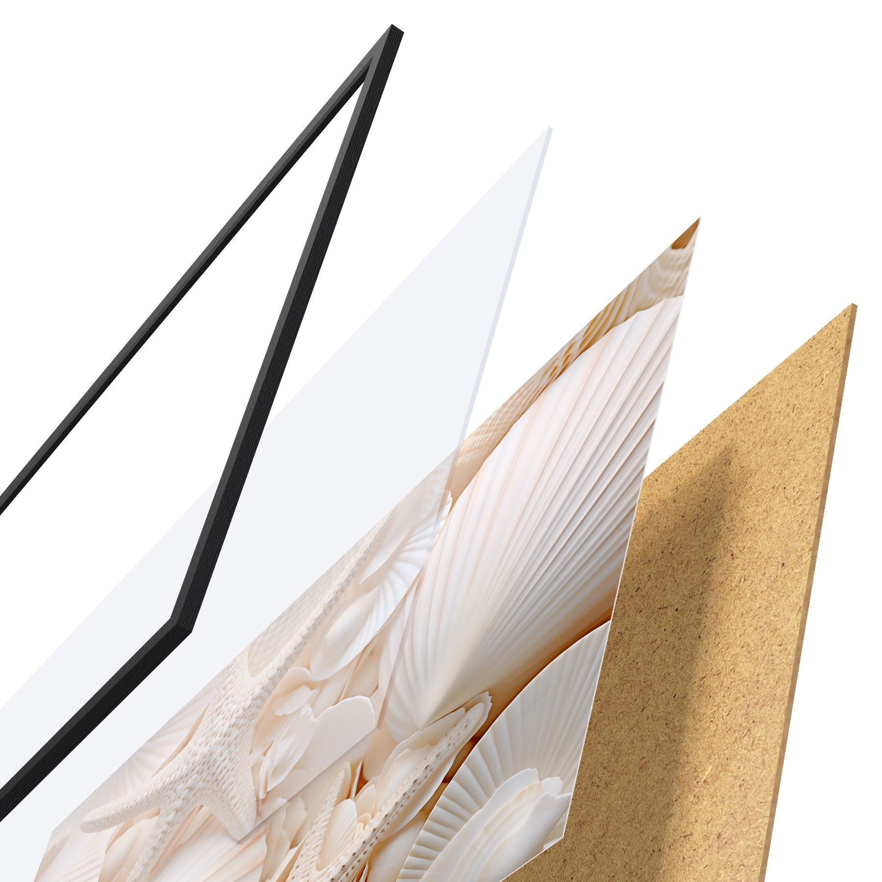 Plakat Dekoratiivsed valged merekarbid ja meritähed, mis loovad tekstuurse ühevärvilise kompositsiooni f44392