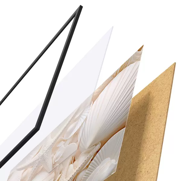 Poster Dekoratiivsed valged merekarbid ja meritähed, mis loovad tekstuurse ühevärvilise kompositsiooni Nr f44392