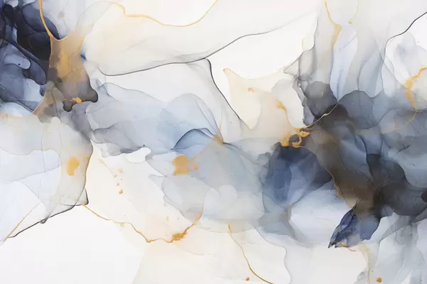 Poster Abstraktne maal sinise tindiga, vedelad ja orgaanilised kujundid, õrnad tekstuurid valgel taustal Nr f44397