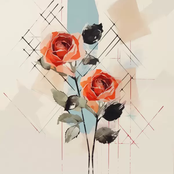 Poster Roosid joonte ja laikude taustal Nr f44421