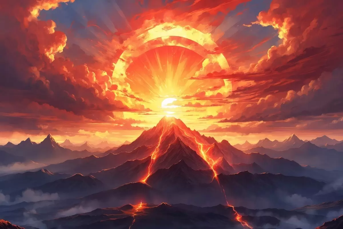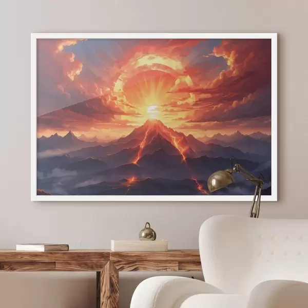 Plakat Päikeseloojang vulkaani lähedal f44432