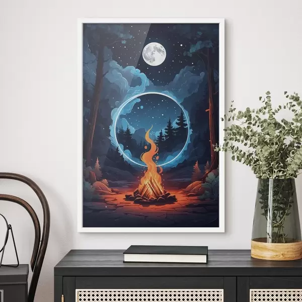 Plakat Lõke öises metsas f44436