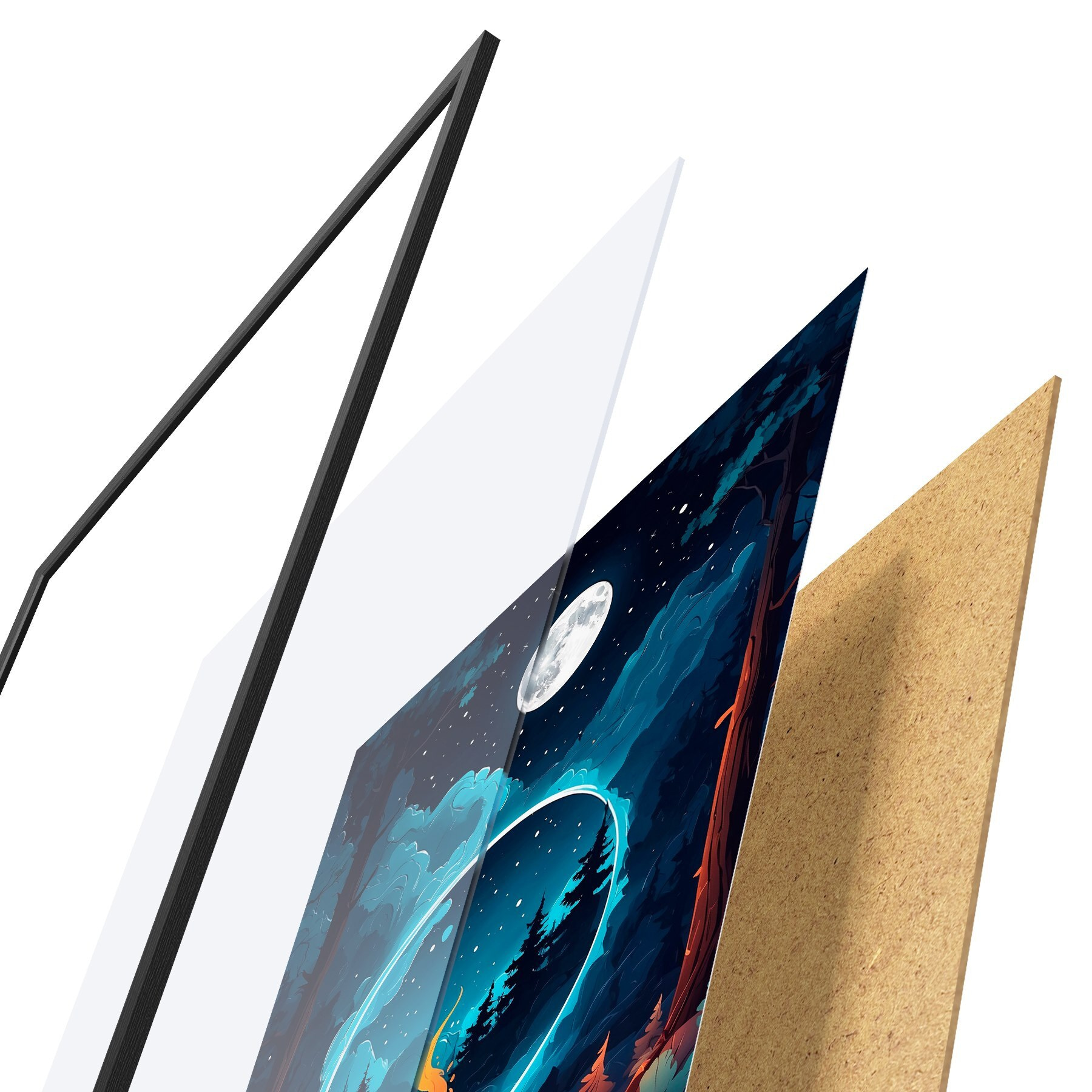 Plakat koosneb raamist, pleksiklaasist, trükitud pildist ja puitlaastplaadist alusplaadist. Tänu tagaküljel olevatele kinnitustele saab plakati kohe seinale riputada.