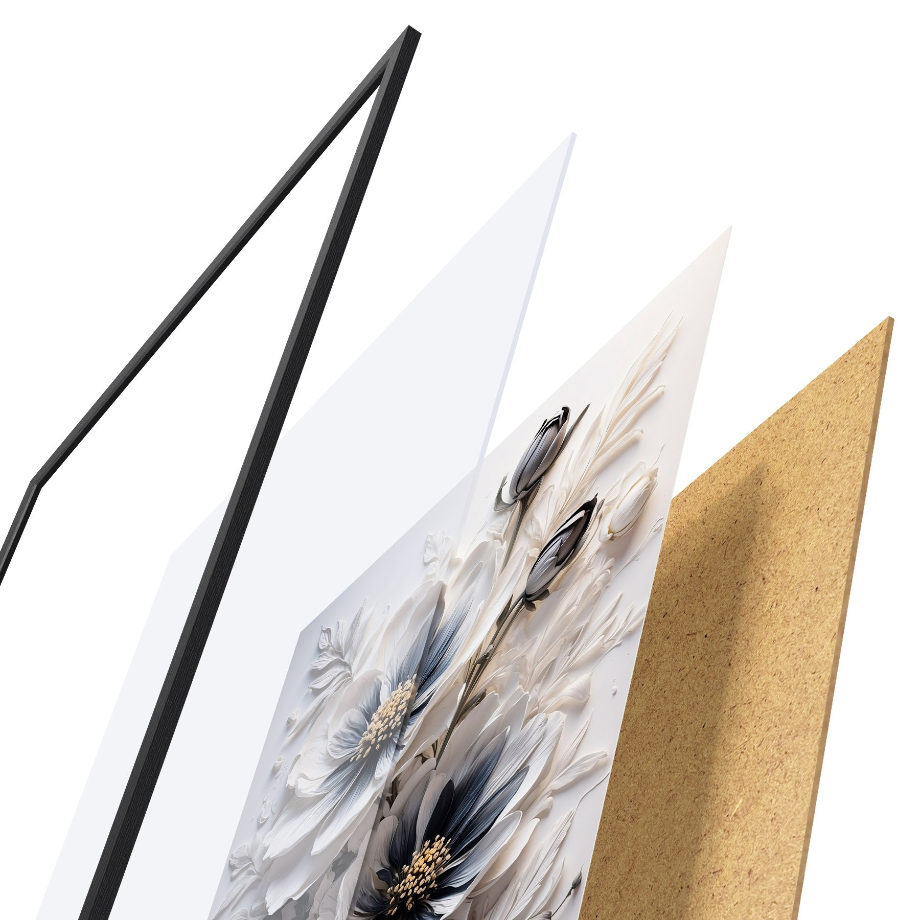 Plakat Must-valged lilled valgel taustal f44446