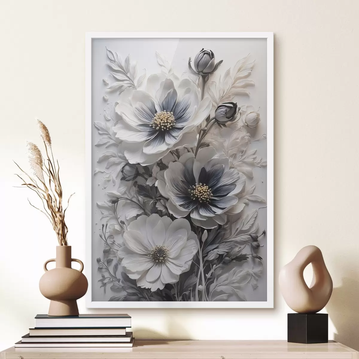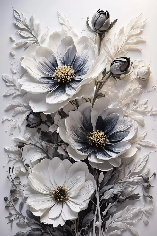 Plakat Must-valged lilled valgel taustal f44446