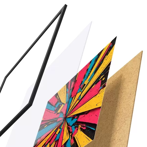 Plakat koosneb raamist, pleksiklaasist, trükitud pildist ja puitlaastplaadist alusplaadist. Tänu tagaküljel olevatele kinnitustele saab plakati kohe seinale riputada.