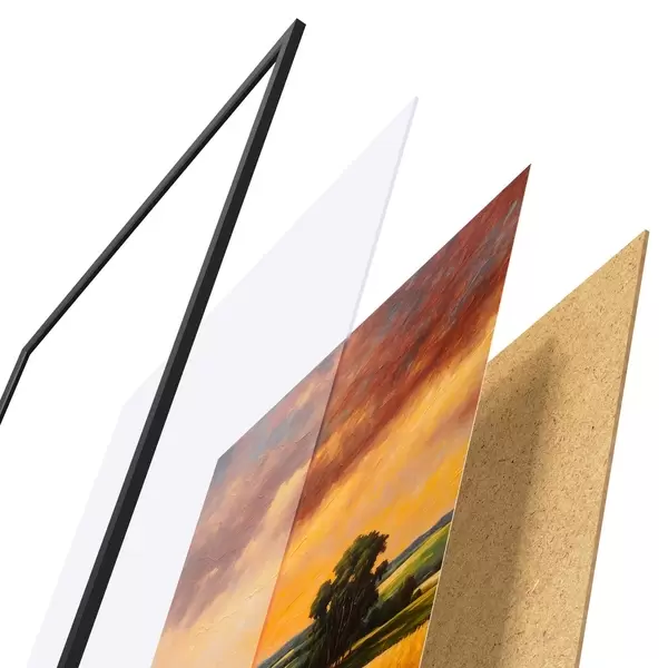 Plakat koosneb raamist, pleksiklaasist, trükitud pildist ja puitlaastplaadist alusplaadist. Tänu tagaküljel olevatele kinnitustele saab plakati kohe seinale riputada.