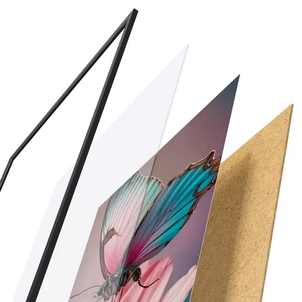Plakat koosneb raamist, pleksiklaasist, trükitud pildist ja puitlaastplaadist alusplaadist. Tänu tagaküljel olevatele kinnitustele saab plakati kohe seinale riputada.