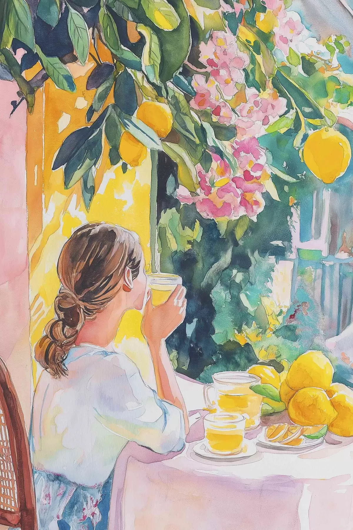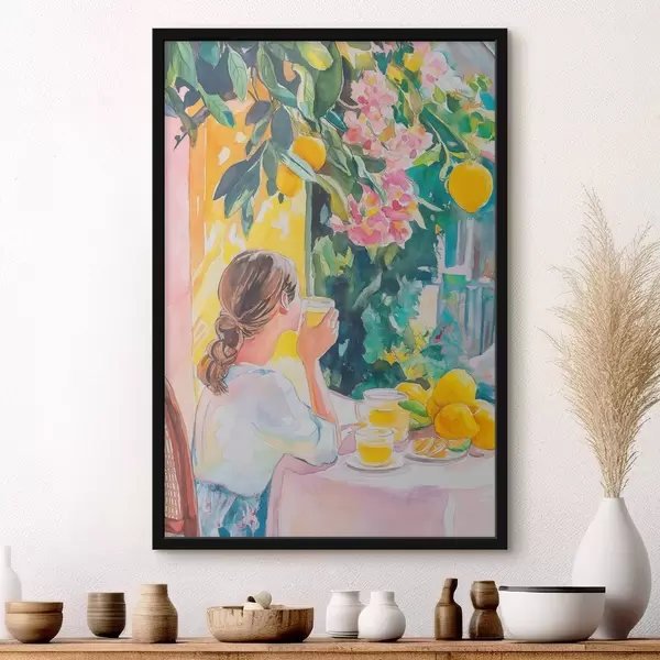 Poster Suvine vibes, tüdruk kohvikus, limoncello, Itaalia, akvarellstiil Nr f44505