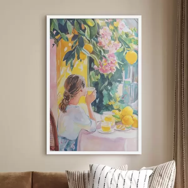 Plakat Suvine vibes, tüdruk kohvikus, limoncello, Itaalia, akvarellstiil f44505