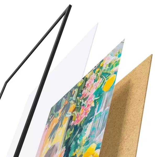 Plakat koosneb raamist, pleksiklaasist, trükitud pildist ja puitlaastplaadist alusplaadist. Tänu tagaküljel olevatele kinnitustele saab plakati kohe seinale riputada.