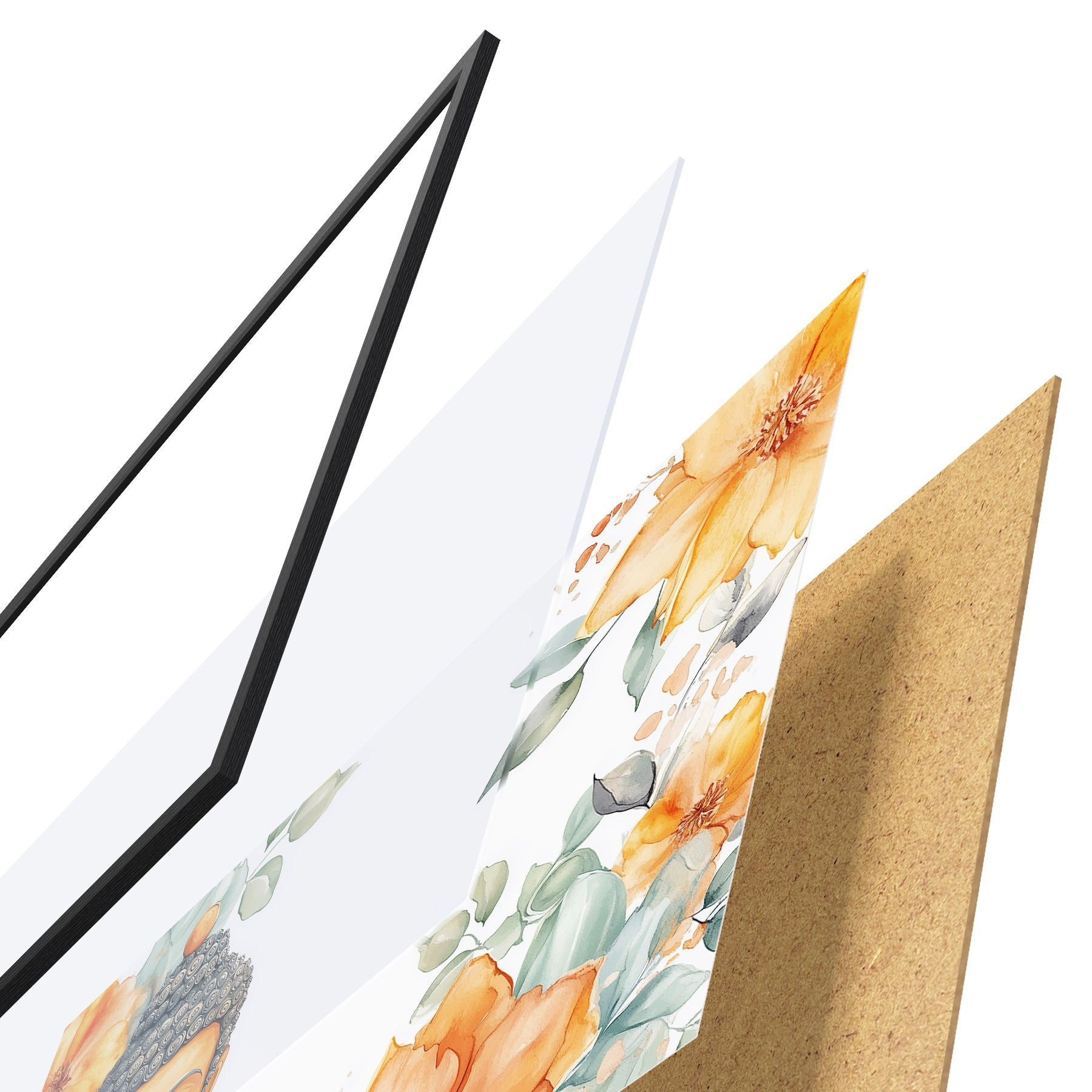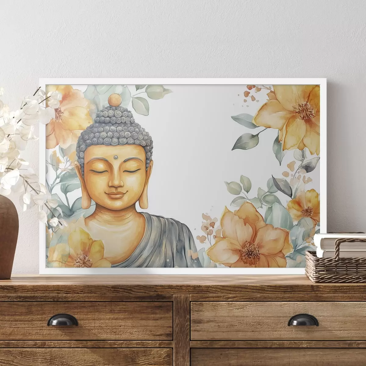 Plakat Buddha ümbritsetud oranžide lilledega, akvarellstiilis f44508