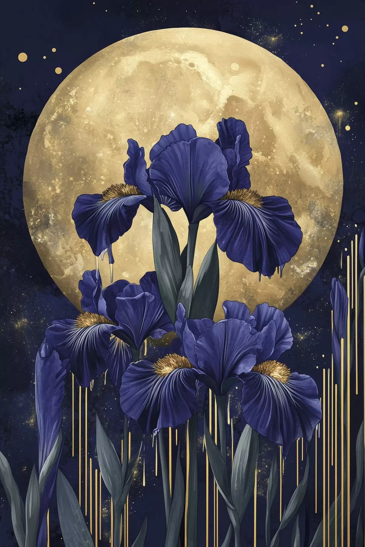 Poster Iirislilled, särav kuu, öine taevas, sinised värvid Nr f44510