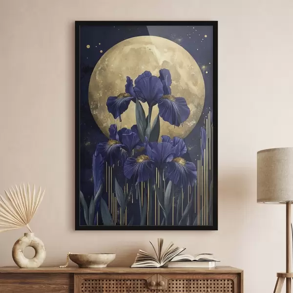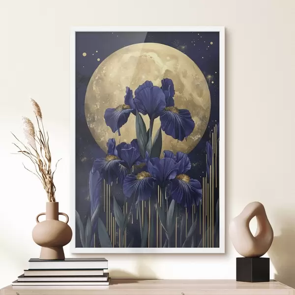 Plakat Iirislilled, särav kuu, öine taevas, sinised värvid f44510