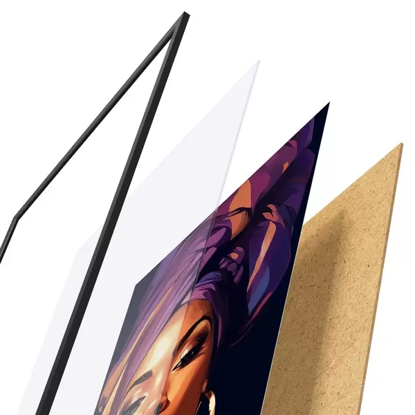 Plakat koosneb raamist, pleksiklaasist, trükitud pildist ja puitlaastplaadist alusplaadist. Tänu tagaküljel olevatele kinnitustele saab plakati kohe seinale riputada.