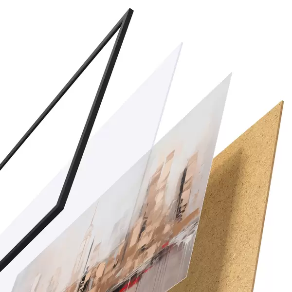 Plakat koosneb raamist, pleksiklaasist, trükitud pildist ja puitlaastplaadist alusplaadist. Tänu tagaküljel olevatele kinnitustele saab plakati kohe seinale riputada.