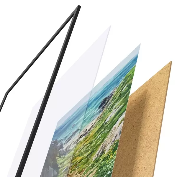 Plakat koosneb raamist, pleksiklaasist, trükitud pildist ja puitlaastplaadist alusplaadist. Tänu tagaküljel olevatele kinnitustele saab plakati kohe seinale riputada.