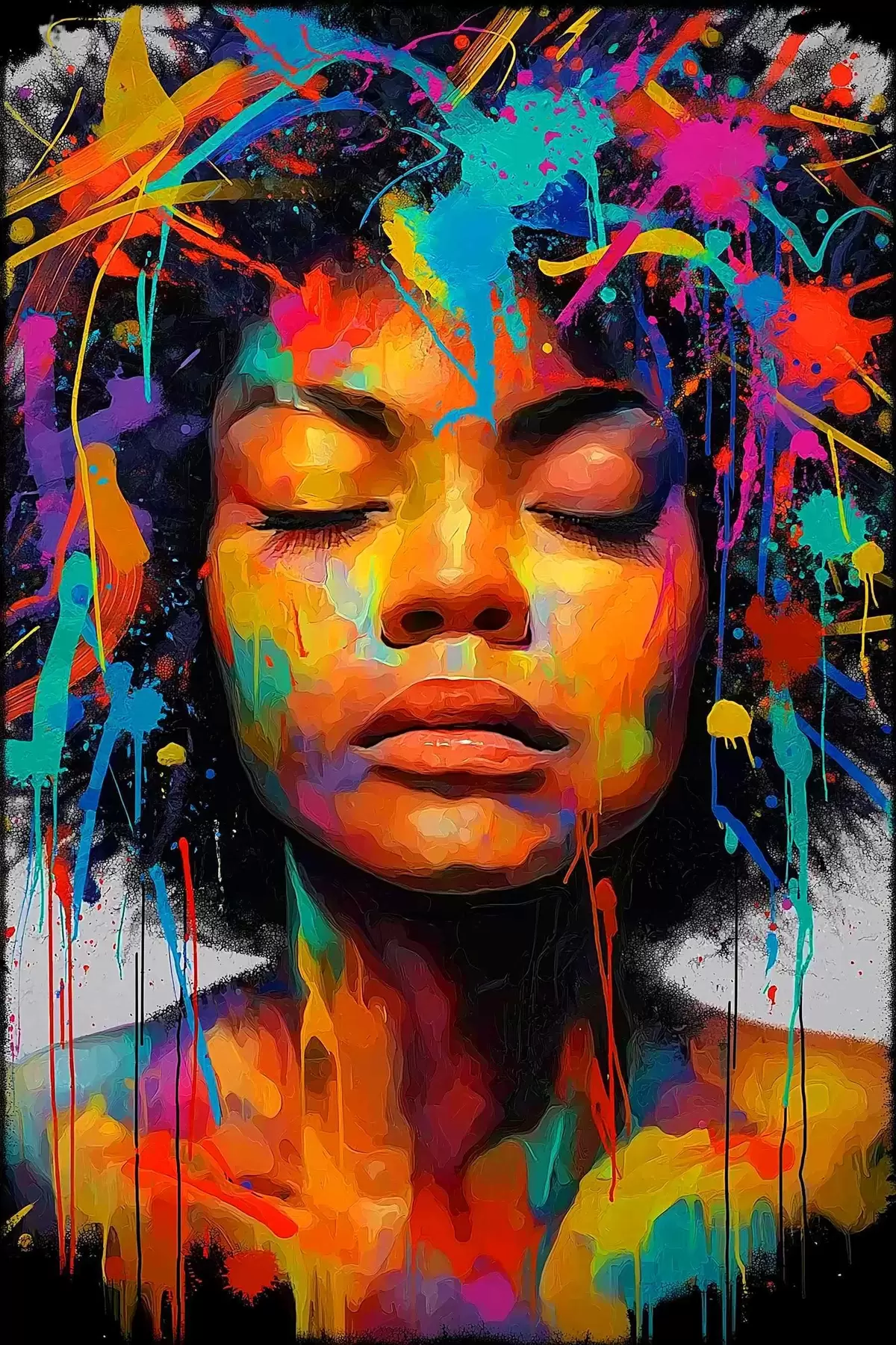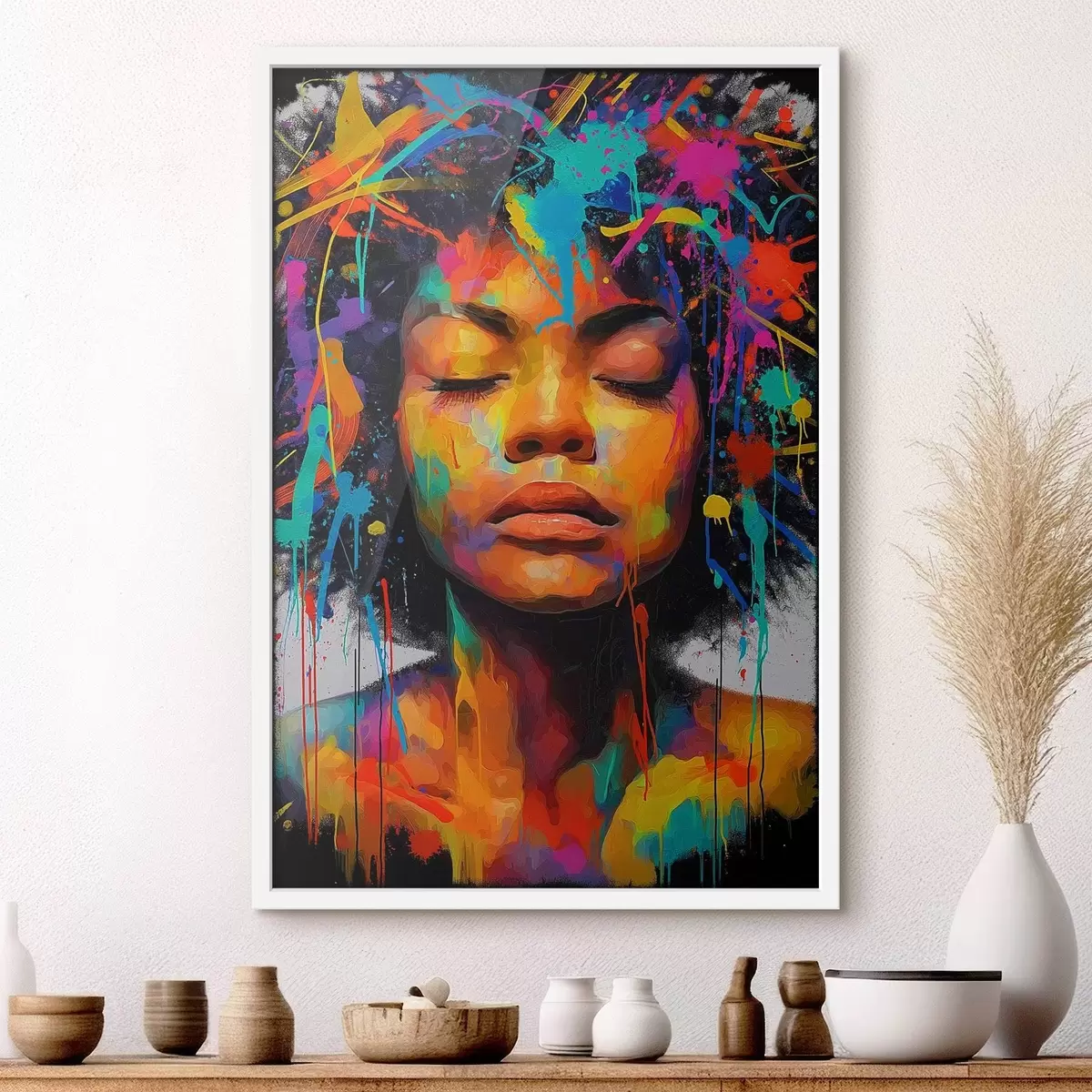 Plakat Tüdruk erksates värvides, abstraktne stiil f44618