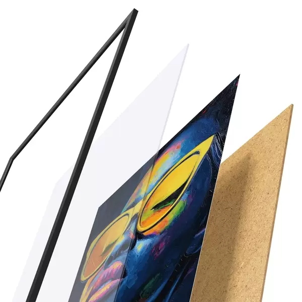 Plakat koosneb raamist, pleksiklaasist, trükitud pildist ja puitlaastplaadist alusplaadist. Tänu tagaküljel olevatele kinnitustele saab plakati kohe seinale riputada.