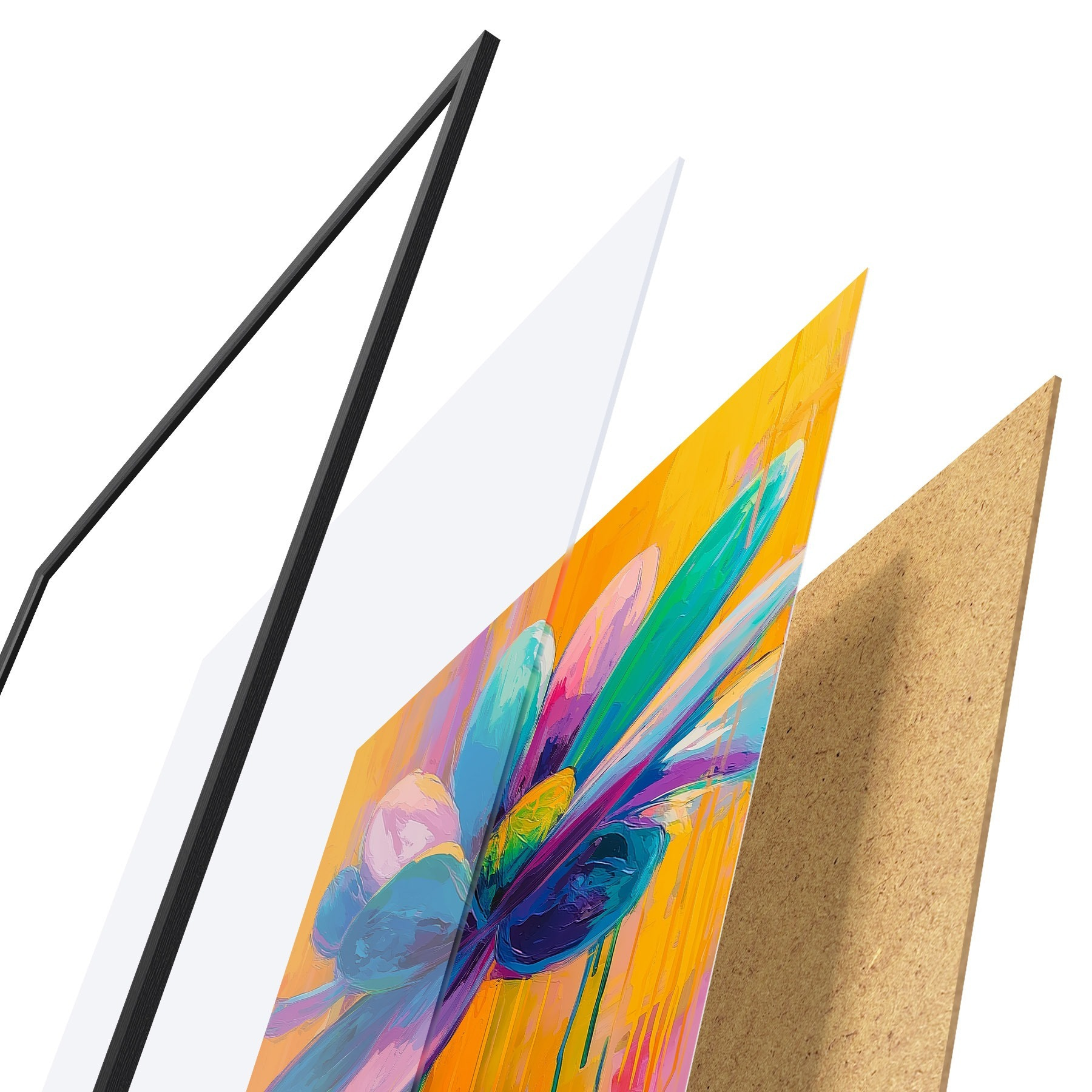 Plakat koosneb raamist, pleksiklaasist, trükitud pildist ja puitlaastplaadist alusplaadist. Tänu tagaküljel olevatele kinnitustele saab plakati kohe seinale riputada.