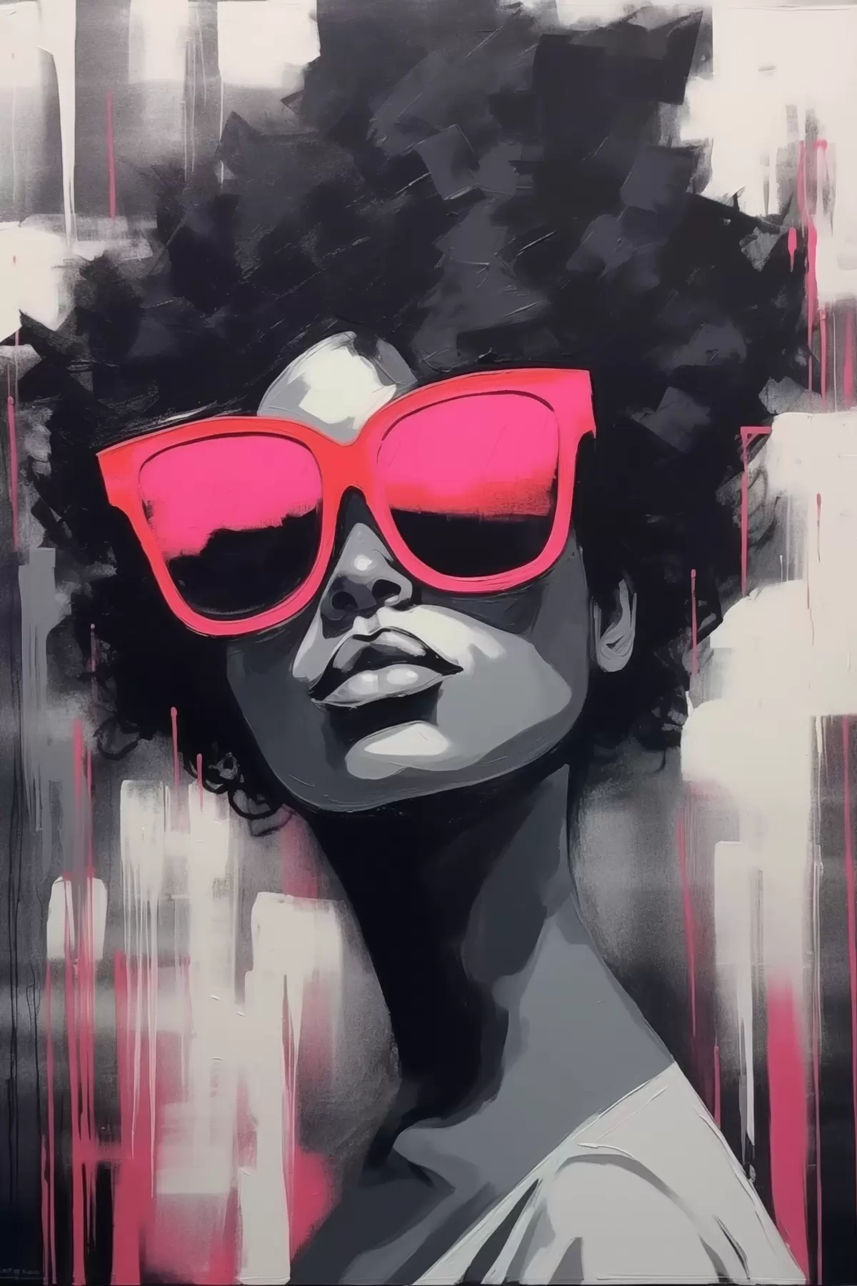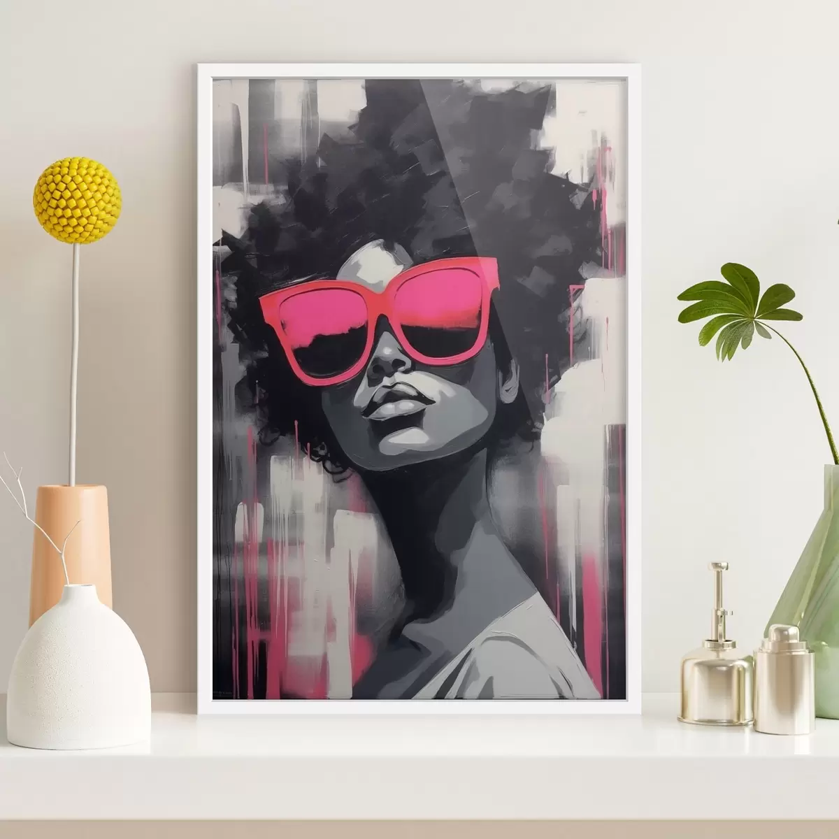 Poster Tüdruk roosa prillidega, must-valge stiil Nr f44624