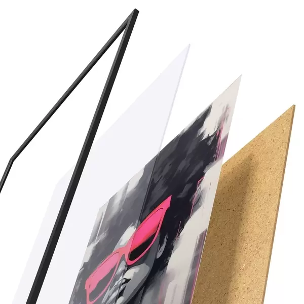 Plakat koosneb raamist, pleksiklaasist, trükitud pildist ja puitlaastplaadist alusplaadist. Tänu tagaküljel olevatele kinnitustele saab plakati kohe seinale riputada.