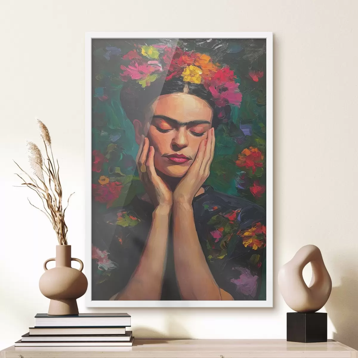 Poster Naine lilledega, pildiline stiil Nr f44628