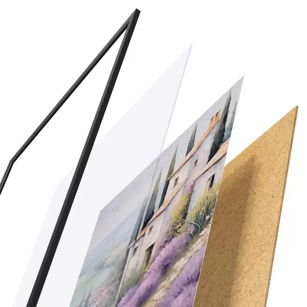 Plakat koosneb raamist, pleksiklaasist, trükitud pildist ja puitlaastplaadist alusplaadist. Tänu tagaküljel olevatele kinnitustele saab plakati kohe seinale riputada.